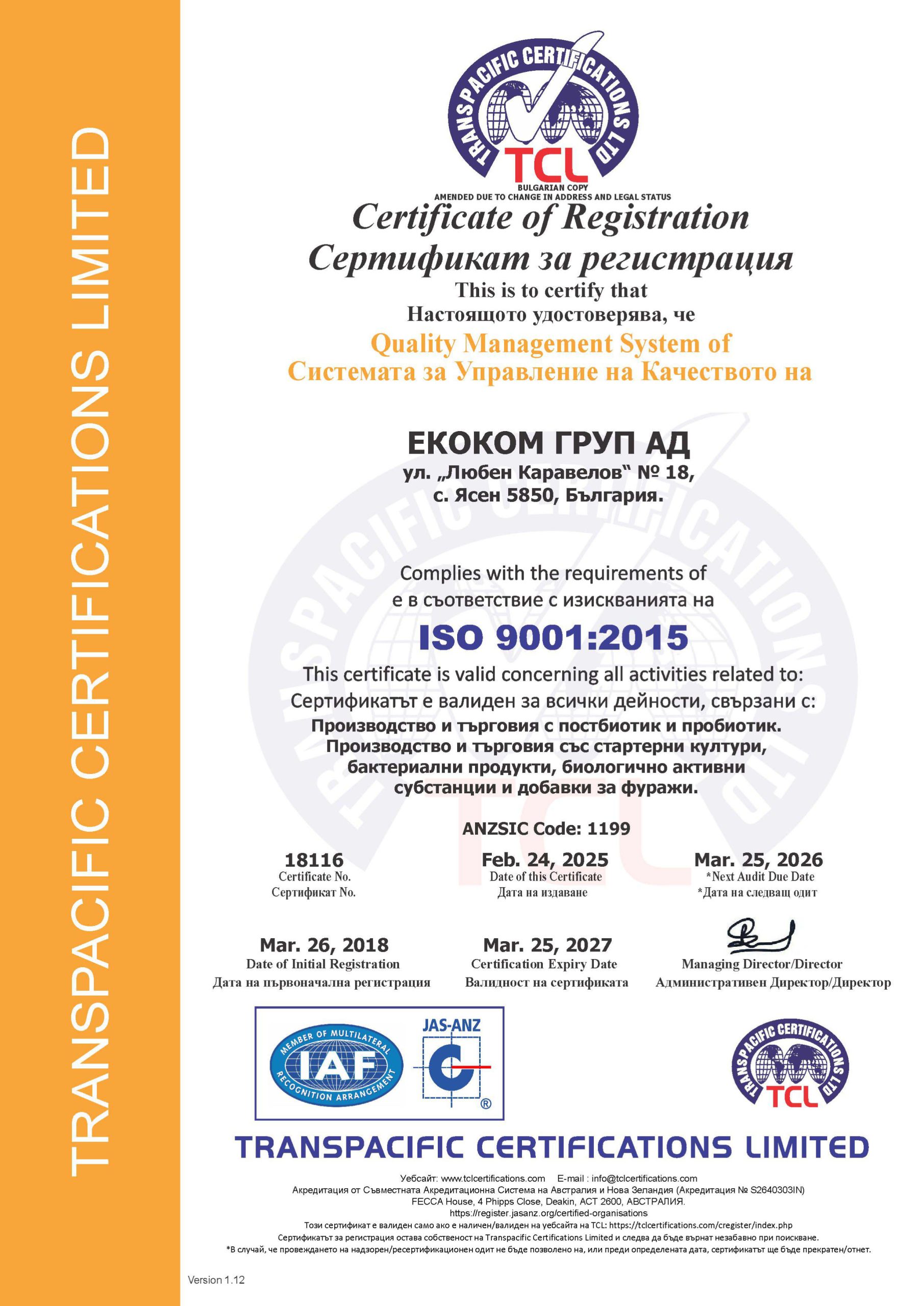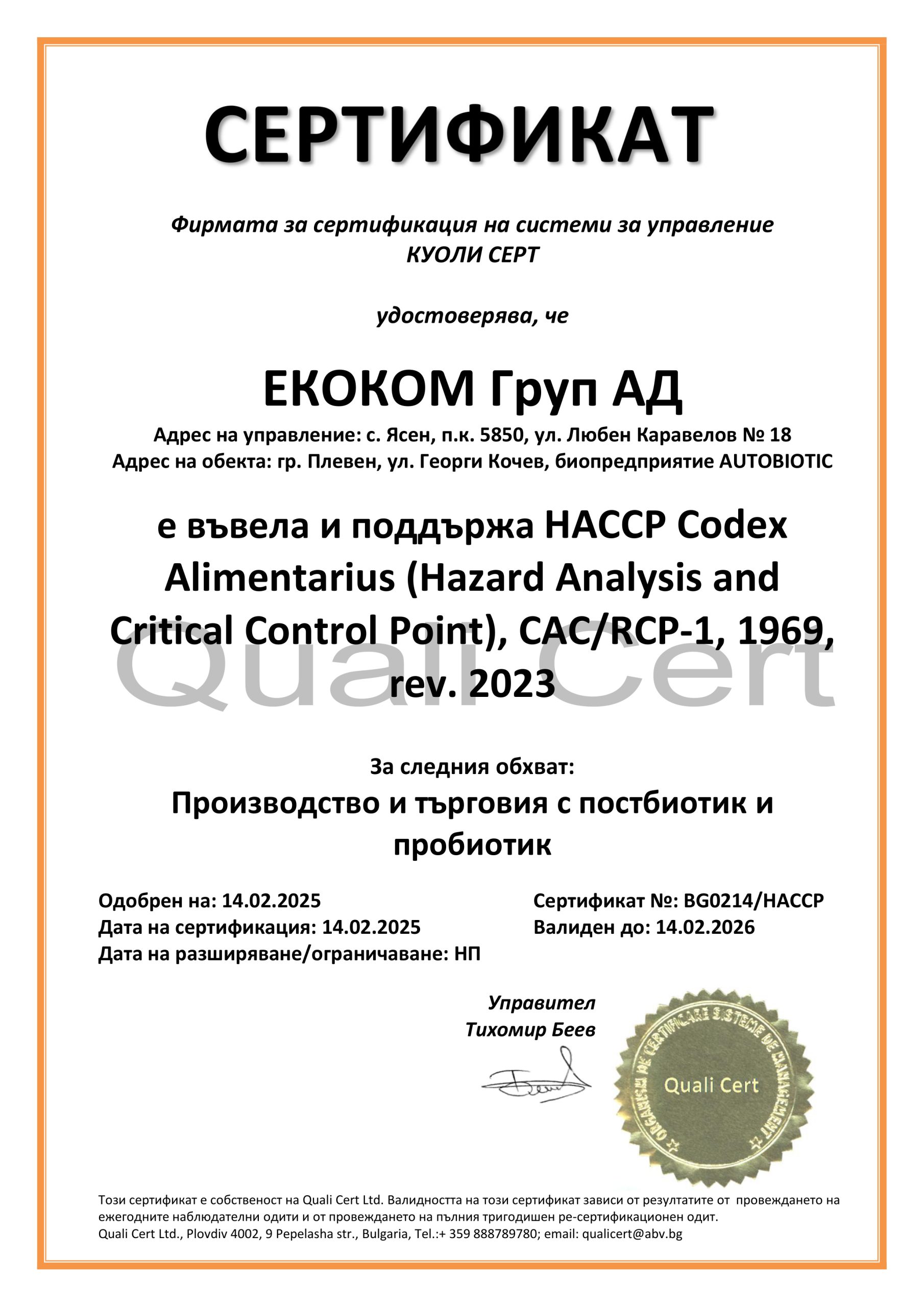 Έχουν αναπτυχθεί διάφορες καινοτόμες βιοτεχνολογικές μέθοδοι για την παραγωγή μιας νέας γενιάς προβιοτικών σκευασμάτων. Παράγονται 100% φυσικά, αγνά και υψηλής ποιότητας προϊόντα χωρίς συντηρητικά, σταθεροποιητές, γενετικά τροποποιημένοι οργανισμοί (ΓΤΟ) και άλλα πρόσθετα. Η εταιρεία είναι πιστοποιημένη κατά ISO9001, ISO22000, HACCP και GMP. Τα προϊόντα πληρούν όλα τα ευρωπαϊκά πρότυπα, καθώς και τα πιστοποιητικά Halal και Kosher.