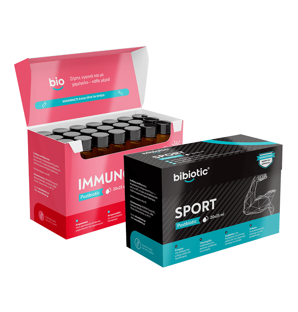 Ο συνδυασμός των Bibiotic® Sport και Bibiotic® Immuno προσφέρει ατομική αλλά συμπληρωματική φροντίδα – για όσους χρειάζονται ενέργεια και αποκατάσταση και για όσους επιθυμούν σταθερή ανοσία και προστασία όλο τον χρόνο.