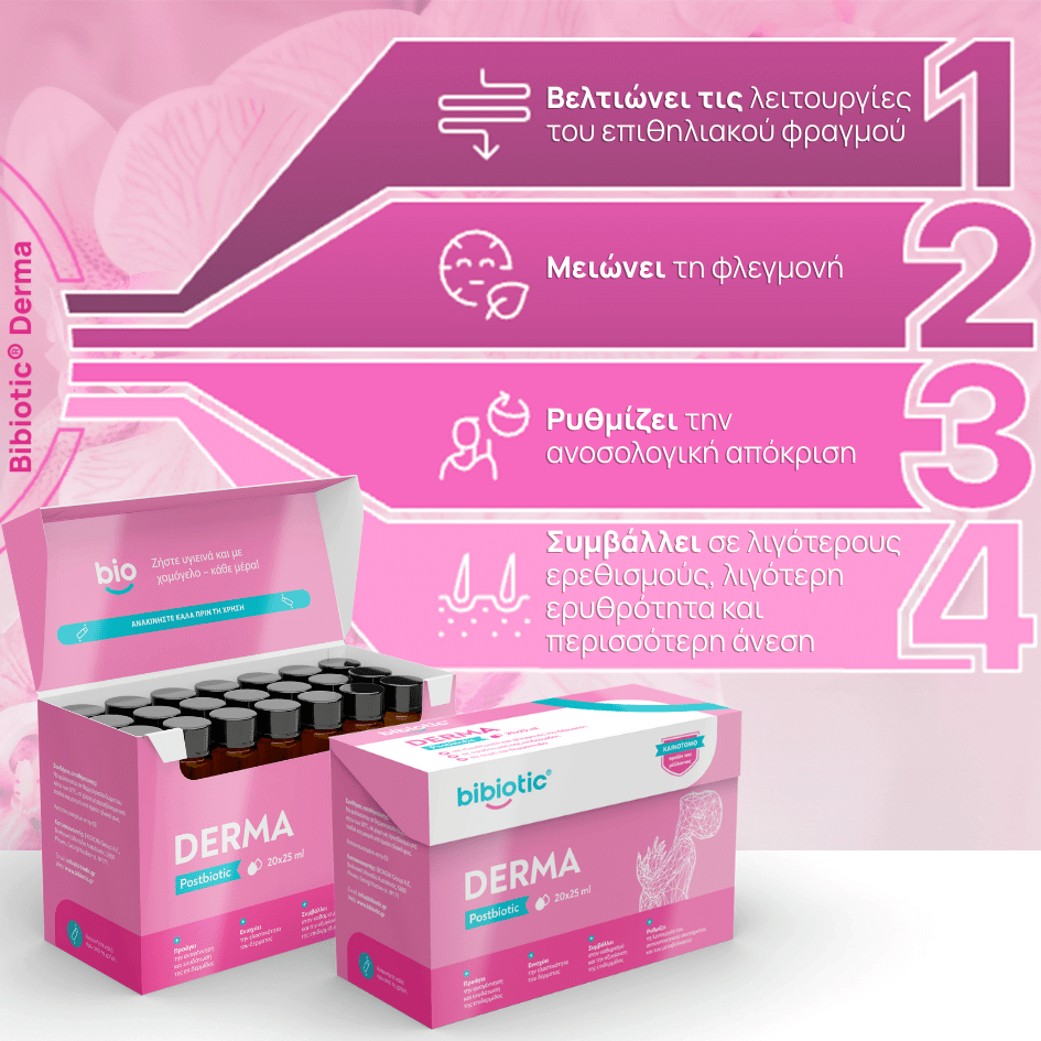Το Bibiotic® Derma x2 είναι ένα προωθητικό πακέτο που δημιουργήθηκε για άτομα με ευαίσθητο, ξηρό και φλεγμονώδες δέρμα, επιρρεπές σε ερεθισμούς και εκδηλώσεις ατοπικής δερματίτιδας.