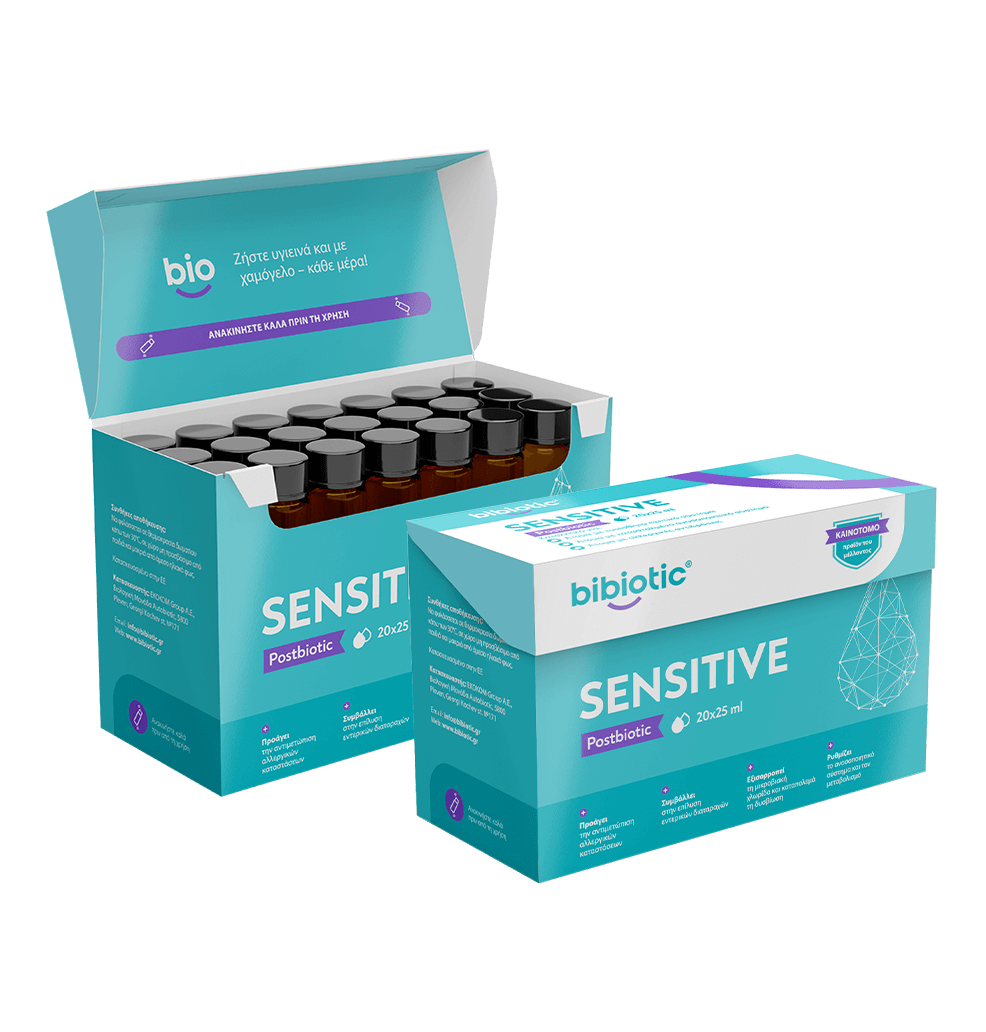 Το Bibiotic® Sensitive υποστηρίζει τη φυσική αλληλεπίδραση μεταξύ εντέρου και ανοσοποιητικού συστήματος — μια σχέση καθοριστική για τον έλεγχο των αλλεργικών αντιδράσεων.