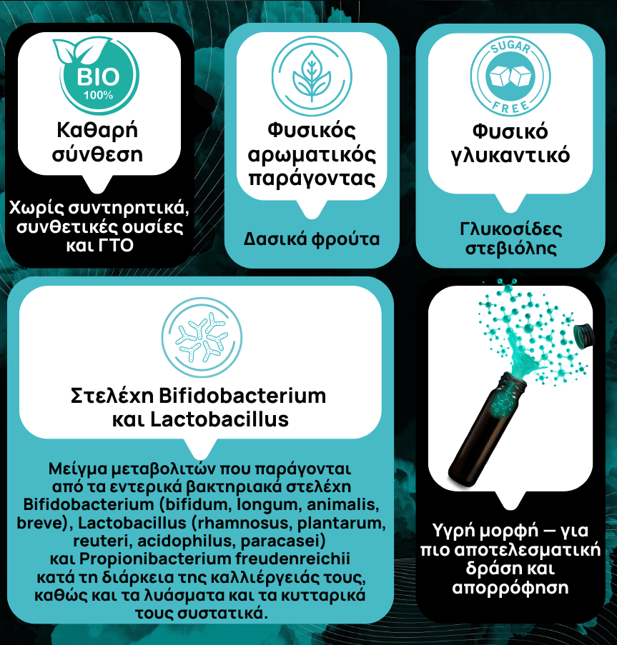 Το μεταβιοτικό BIBIOTIC® SPORT είναι ένας ισχυρός ρυθμιστής της μικροβιακής χλωρίδας και, ως τέτοιος, συμβάλλει σημαντικά στην ισορροπία του εντερικού οικοσυστήματος και στην ευεξία του εντέρου. Η ισορροπημένη μικροβιακή χλωρίδα και η υγιής εντερική λειτουργία προάγουν την πληρέστερη και σωστή απορρόφηση των θρεπτικών συστατικών και των ιχνοστοιχείων. Επιπλέον, το BIBIOTIC® SPORT περιέχει σειρά ενζύμων που βοηθούν στη βέλτιστη διάσπαση των σύνθετων θρεπτικών ουσιών σε απλούστερες μορφές, ώστε να απορροφώνται αποτελεσματικότερα από τον οργανισμό.